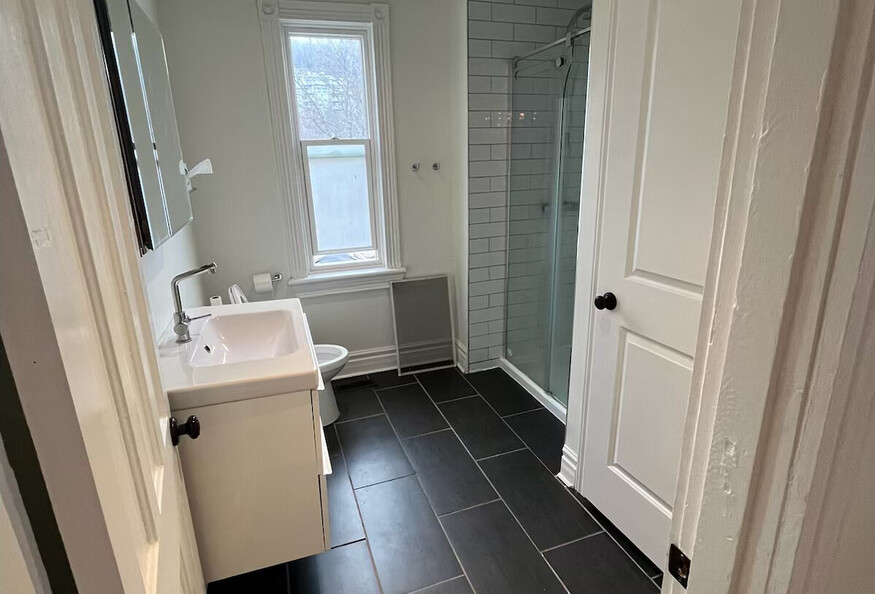Beautiful bright upper level unit in a heritage triplex in coveted Stinson. One bedroom plus smaller second bedroom, den or office. One bath with walk in shower and in-suite laundry. Kitchen is decked out with stainless steel appliances, stone countertops and tile backsplash. Back door opens onto dedicated patio with stairs down to large yard shared with main floor tenant. Plant your tomatoes and sit in the sun. One parking spot is included with the unit - further street parking is plentiful. Close to St. Jo's and the Juravinski. This space is ideal for a healthcare professional. This is a quiet building and a good fit for the other tenants will be a priority. April 1st move in - or possibly slightly earlier. We're getting the space freshly painted and fixed up for the next lucky occupant :) $1850 per month including AC/heat/hot water. Tenant pays hydro and internet. We have been renting to Medical students and medical professioanls for years. I myself worked long shifts and understand the need for a quiet safe place to live and study. Medical professionals living in building.
