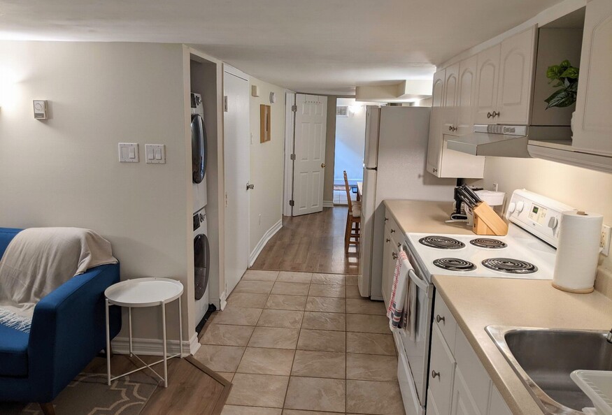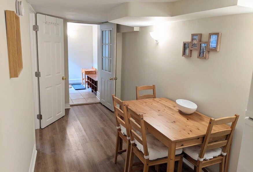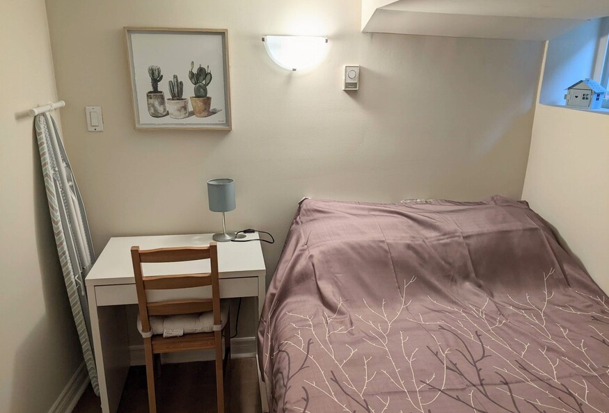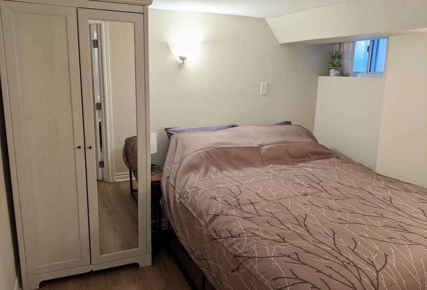 600 sq ft, furnished and equipped. Seven steps to private entrance, fully equipped kitchen, Queen bed, Double bed, desk area and laundry. All utilities and high speed internet included. Starter pack of consumables included. High chair and pack n play available upon request. No smoking, no pets. Maximum occupancy 4.