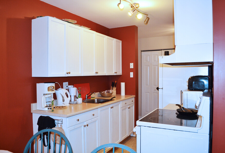 • Includes major appliances (fridge, stove/oven, microwave, toaster, coffee machine)