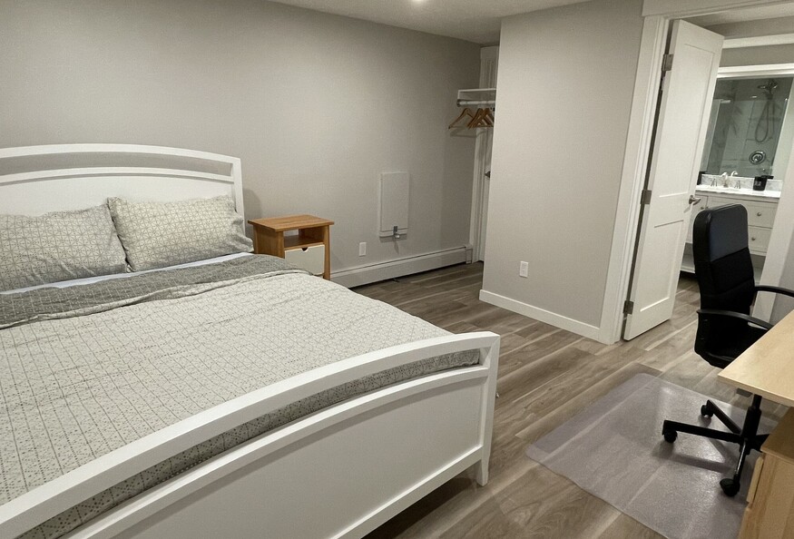 Newly renovated, large lower level bedroom, lots of storage, and with ensuite private bathroom. Shared kitchen and living room with possibly another resident. Full kitchen has a lot of cabinet and storage pantry with pots/ pans and all utensils/ cutleries. Laundry is in-house and parking on street/ outside pad available. 5min walk door to door to FMC and 10-15min walk to UofC. Pls email/ text for more info./ pics. We are also listed on Airbnb for more info search under same title.