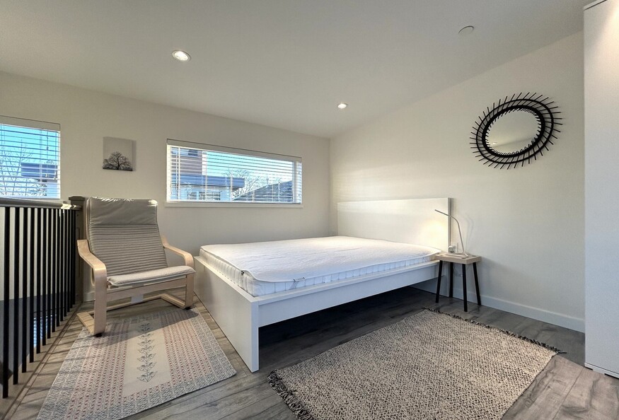 Bright and airy, newly furnished self-contained laneway house (470 sqft) with own entry off Sophia Street. Two levels with galley kitchen and beautiful bathroom with bathtub/shower below; large bedroom/living area and charming breakfast nook above. Hardwood laminate flooring—tile in bathroom—and fresh paint throughout. Baseboard and forced air heating. Lots of big windows and a view of the park! Tasteful furnishings include queen bed, easy chair, lamps, blinds, rugs, wall décor, wardrobe, customizable worktable and stools, storage shelf, and dining table and chairs (as shown in photographs). Located on quiet corner lot in pleasant neighbourhood. Excellent transportation options. Steps to transit on Main Street as well as cross-town routes on 41st and 49th direct to UBC. Walk to Canada Line, Oakridge, and Langara. Just off major bike routes (45th east-west; Prince Edward or Ontario north-south). Well-situated for car commute to BC Women's and Children's, VGH, Mount Saint Joseph Hospital, UBC, Downtown, Richmond, Burnaby, the airport, etc. Plenty of free street parking. Steps from MacDonald Park and easy walking distance to grocery stores, shops, cafes, and restaurants on Main and on Fraser. Ideal for 1 person or a couple (max. 2 occupants). Min. 3-month fixed-term lease; max. 12-month fixed-term lease. Absolutely no pets, no smoking, no vaping, and no drugs of any kind. Rent is $2150/month, including water. Tenant is responsible for electricity/heat and internet/cable (wired for Rogers/Shaw). Half month's rent required as security/damage deposit.