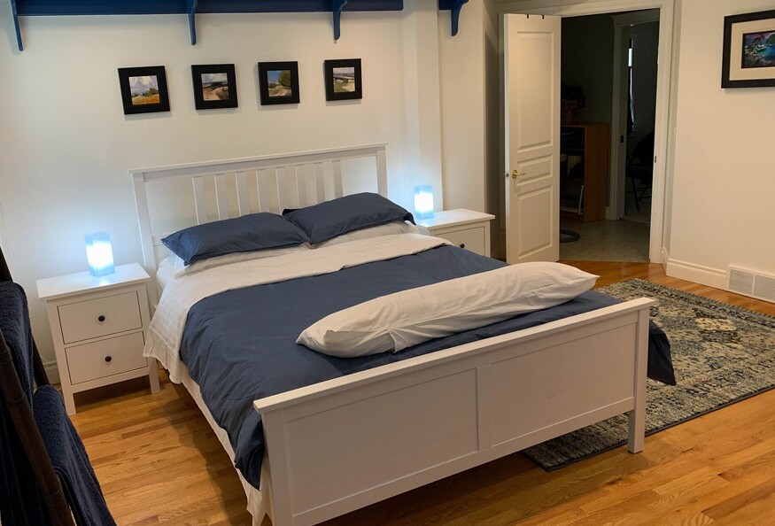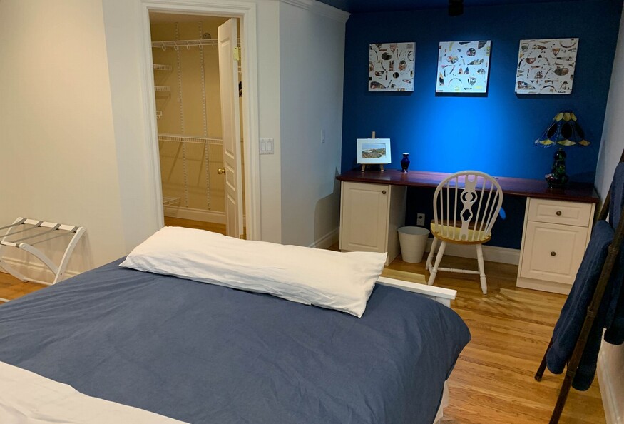 Working physician, retired husband, super-friendly black lab live here. Beautiful home and gardens, shared accommodations, short term renting single room, furnished. Access to treadmill and Peloton spin bike.