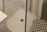 The bathroom features a custom glass shower with a rain shower head that adds a touch of luxury to your daily routine.