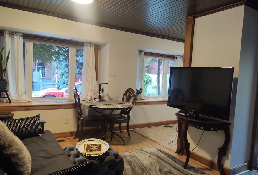 This unique property is like living in a cottage in the city. It is a fully furnished two-story coach house on a prestigious street in Little Italy. A 15-minute walk to U of T. A short walk to many local hospitals. A street lit with 100-year-old gas-fired lanterns. Beautiful silver maple trees and stunning in the fall. I live in the main house and the coach house is behind it. King sleigh bed and sofa bed. Original hardwood floors throughout. The kitchen and living room are combined. Updated stainless steel appliances. Lots of storage. Large TV, with some free channels and sofabed. Wifi is included. 4 piece washroom with tumbled marble floor and countertop. Washing machine and dryer rack. Central A/C and heating . Comes with cookware, coffee machine, toaster, dishes, microwave, bakeware, cutlery, linens, towels, and blankets. Sitting area outside with a table to catch the wifi on your tablet. The area has two grocery stores, Kensington market, public transit, cafes, restaurants, patisseries, libraries, and bike rentals. Street parking is available with City of Toronto parking. (Gas and Hyrdo extra). I have lived in the area for over two decades. Will need to sign a lease. Credit and work reference check. Both my husband and I are U of T grads; got married; have two beautiful sons attending university and we never left the area after school finished.