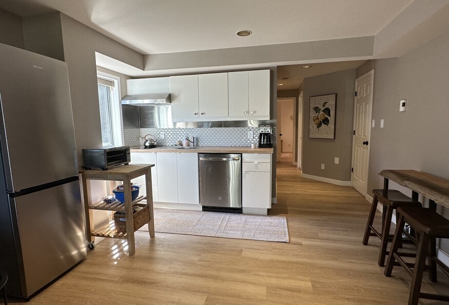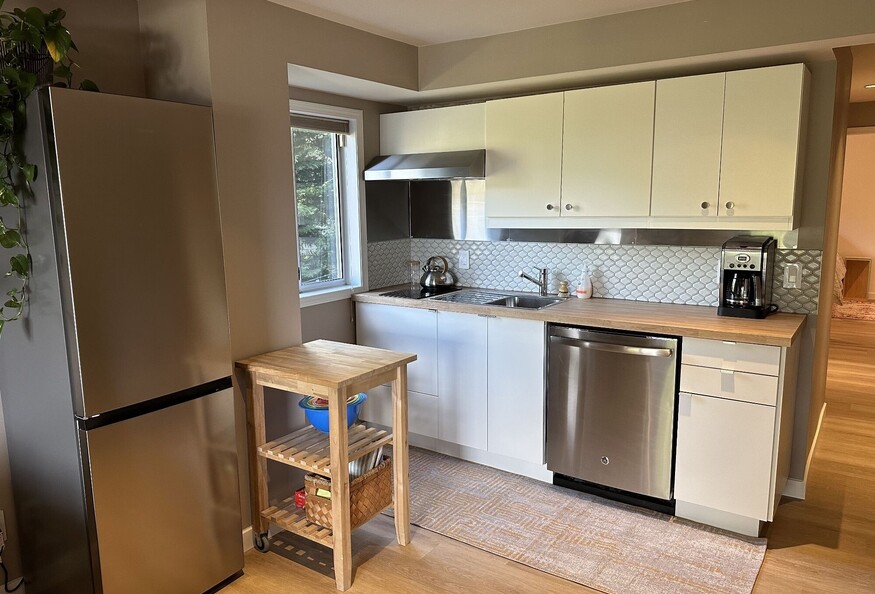 - Your apartment has a full-sized refrigerator, counter top oven, microwave, stove top, dishwasher and private full-sized laundry.