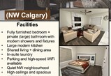 Fully furnished bedroom + private (large) bathroom with modern showers and fixtures Large modern kitchen Shared living + dining area In-suite laundry Parking and high-speed WiFi available Quiet NW neighbourhood High ceilings and spacious common areas Quiet, clean home with other medical student/resident No pets Looking for a working professional or student