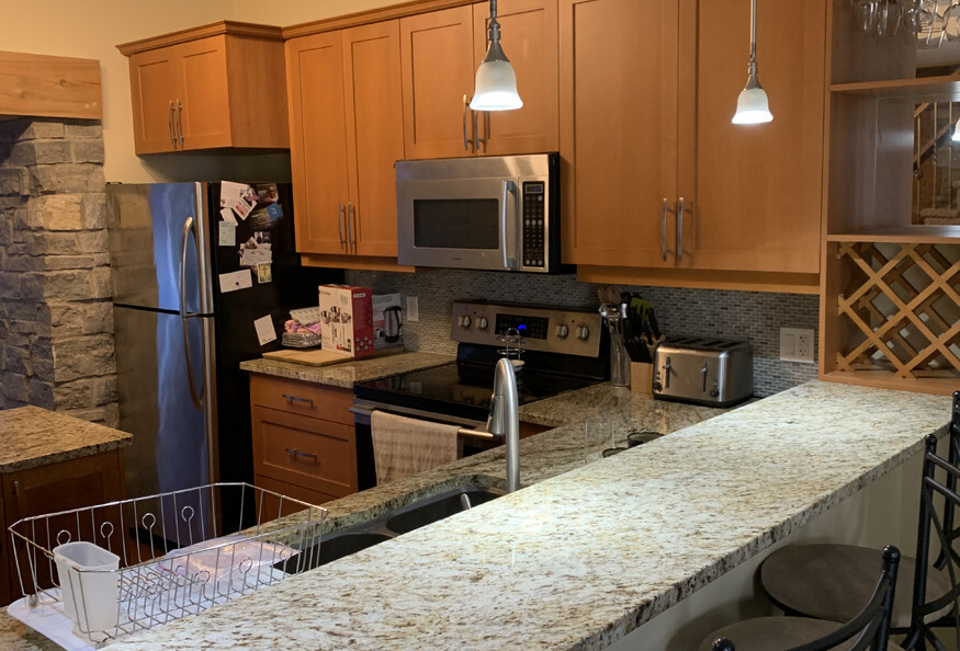 Furnished, recently updated 3 bed, 4 bath townhouse with office. Was our family home until a recent move. Two gas fireplaces, exposed brick and limestone, and a rare downtown attached garage with parking for 2 cars (one inside, one outside). Spacious rear deck with patio furniture and natural gas BBQ. Top floor primary bedroom with massive ensuite, two bedrooms and full bath on second floor, main floor open-concept living space including kitchen with stainless steel appliances and an office with pull-out loveseat. Basement includes another full bath, family room, and walkout through the rear-facing garage. Forced-air heating with central air conditioning and smart thermostat. This home has been lovingly maintained, and is less than five minutes' walk to grocery store, Goodlife gym, LCBO, and downtown Kingston's pubs, shops, and restaurants. Also a five-minute walk to Hotel Dieu Hospital, and 15-minute walk (or five-minute bike ride) to Kingston General Hospital and Queen's University main campus. Price includes furnishings and high-speed internet. Utilities extra (monthly average ~$250-$300 for family of four).