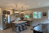 Large Kitchen with dishwasher, island and open concept dining and living room