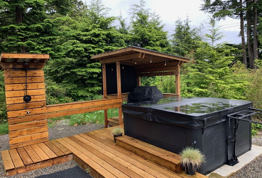 Outdoor Shower, Hot tub and BBQ