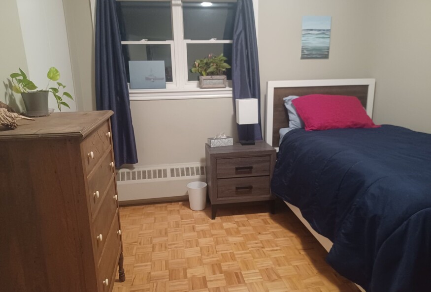 The room is furnished with a Twin bed, nightstand, lamp, closet and dresser. Bedding, towels and laundry soap are provided. Shared living spaces including the bathroom are cleaned weekly and professionally cleaned monthly. We are walking distance to a grocery store and have a bus stop near the house to take you to work, shopping, banks, a pharmacy, Starbucks, and a mall with several take-out restaurants including Indian, Lebanese, Italian and pizza.