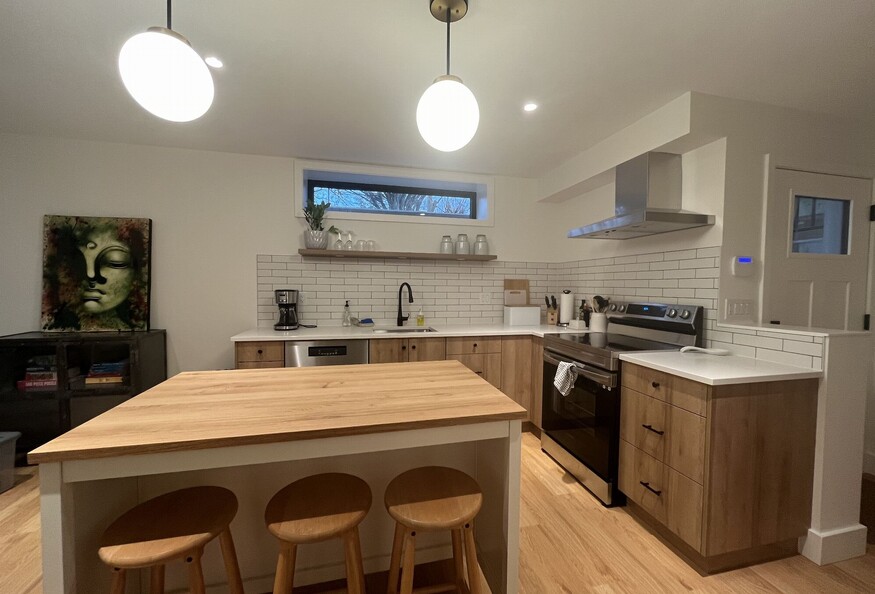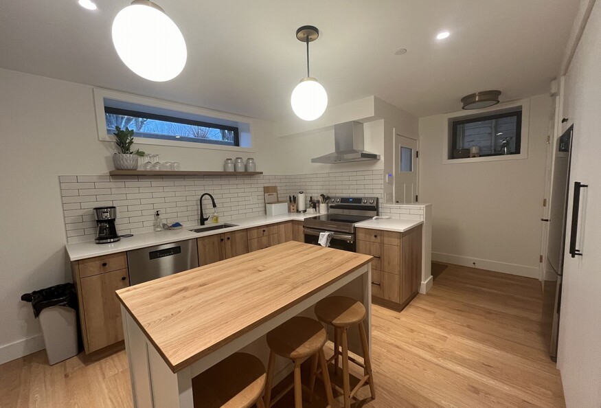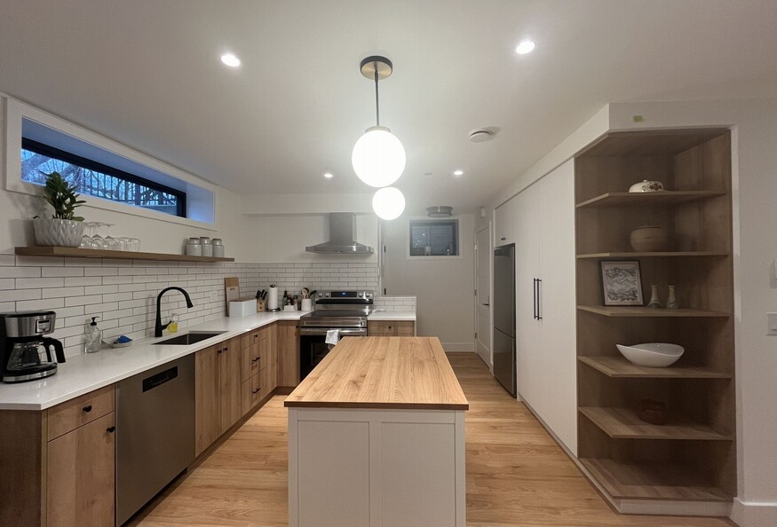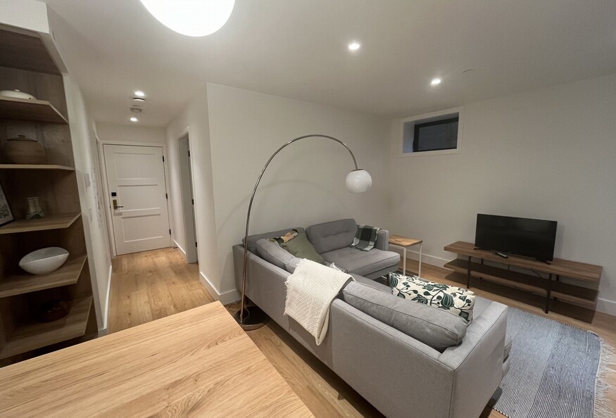 Brand new, fully furnished, one bedroom/one bathroom basement suite with a private entrance. The suite boasts a full bathroom, King-sized bed, in-suite laundry, dishwasher, wifi, and TV streaming services. Situated on the lower level of a custom-built family home, located on a quiet biking street, with ample street parking, and easy access to vibrant Main street.