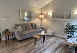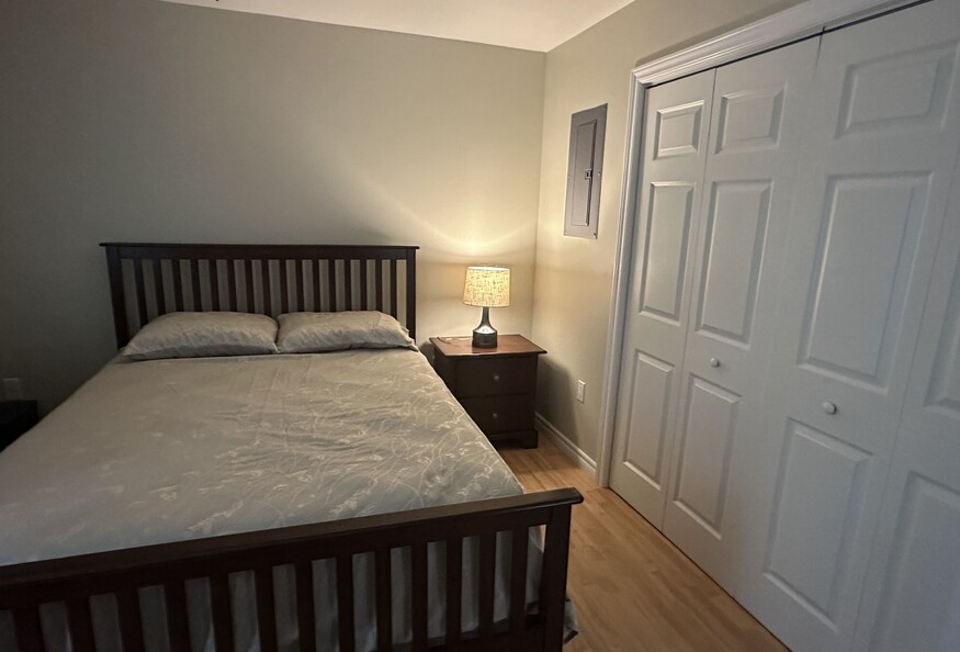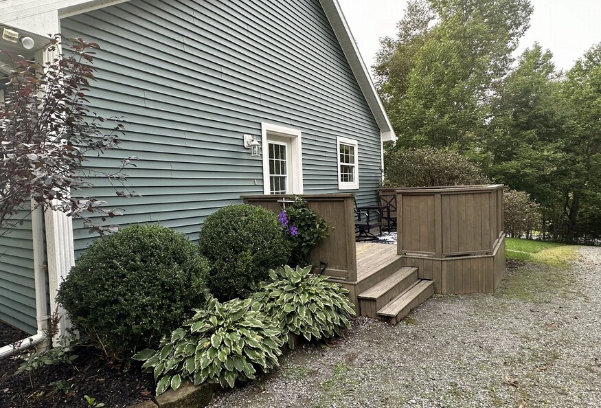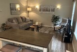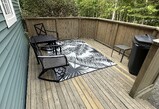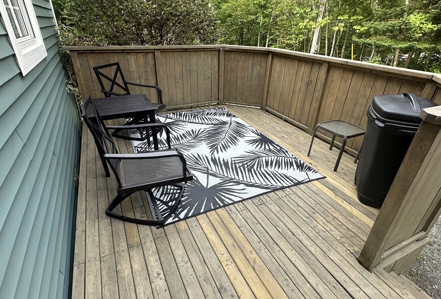 The 24'x 28' (672 Sq ft) above ground, one bedroom attached apartment (formerly an in-law suite) has been newly renovated with fresh paint, flooring, window treatments and furniture. The apartment has cathedral ceilings in the open kitchen/living room area and is fully furnished with all kitchen items, island table/4 stools, couch and chair, queen bed, washer/dryer, air exchange, in-floor heat, full bath, linens/towels, TV, Wifi, private deck and parking.