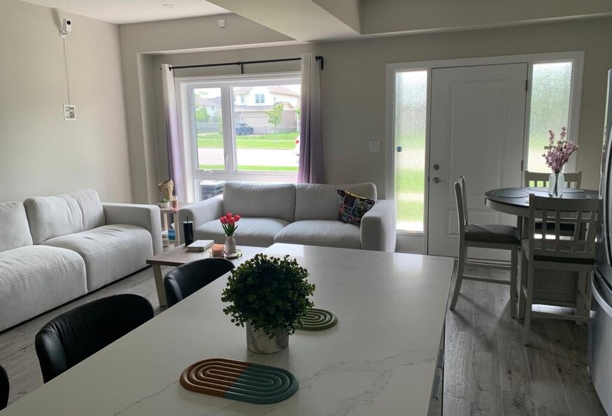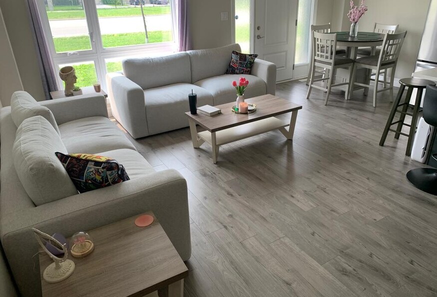 Upstairs room is $950/month with walkin closet. Only bedframes and mattresses provided, all common areas fully furnished. Cleaning service for common areas, all utilities, and high speed internet included in rent. Bus stop to Western University within 2 minute walking distance.