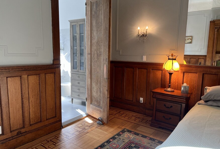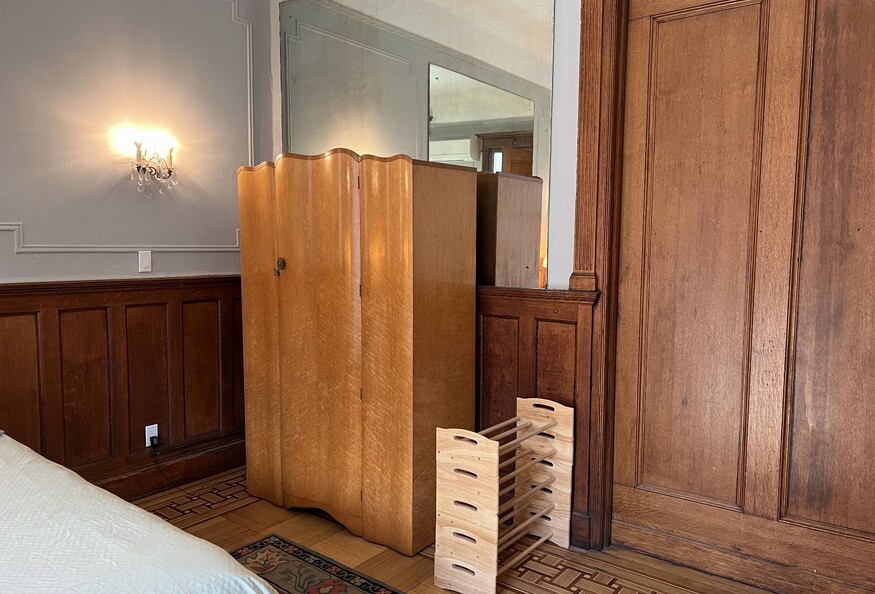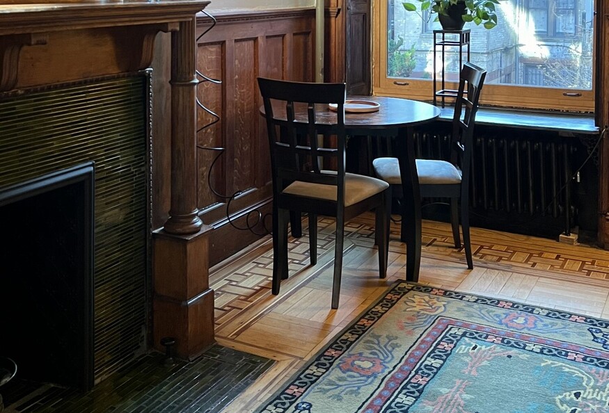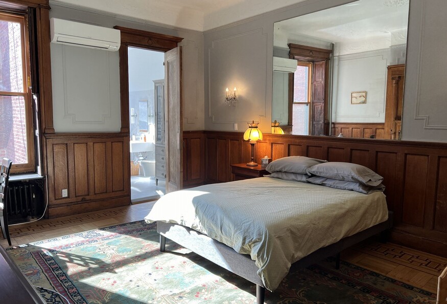Features include private decorative fireplace, 15'x20' private room and newly remodeled private bathroom with Japanese soaking tub and shower. Shared kitchen features laundry, dishwasher, microwave, ovens, restored Chambers Stove. Outdoor planted garden shared as well. The share is with the owners of the brownstone.