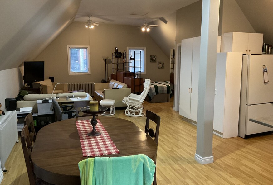 Open concept loft above garage, separate entrance, laminate flooring, new cabinetry, tastefully furnished. Rent includes all utilities including cable, internet, heat, hydro and water. This space includes parking for one vehicle and is suitable for one person.