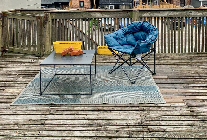 I work evenings and weekends, rising later in the morning. The apartment is designed to afford privacy, with the bathroom immediately outside the bedroom, the kitchen close to that, and a private entrance via the deck. My bedroom and bathroom are on the second floor.