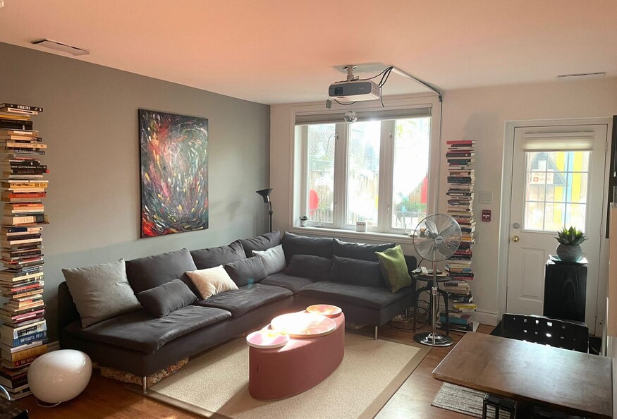 Beautiful, modern, art-filled apartment. Two floors, 1 bedroom, 1.5 baths. Projector, Hi-Fi sound system, deep library. Blacked out bedroom for deep, post-shift sleeps. You can see the Toronto Western a few hundred meters away. Out the door, coffee shops, green grocers, every restaurant you could want.