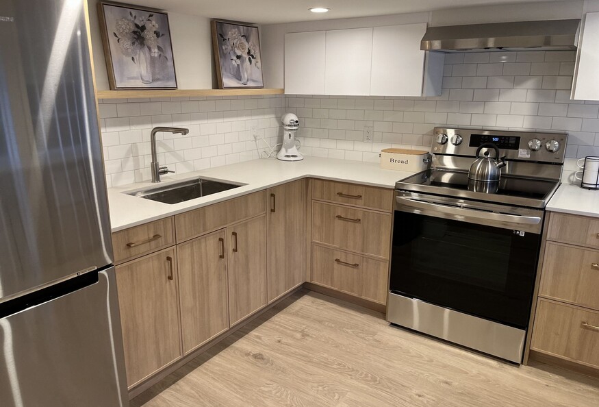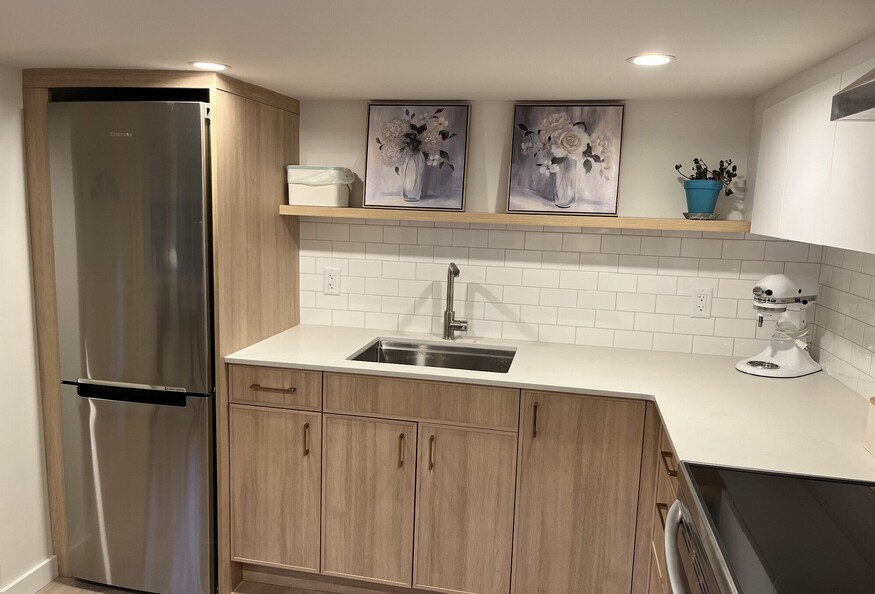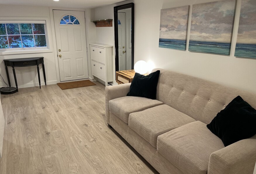 The suite was refinished in 2023 so everything is new! There is a separate entrance for the suite and there is no shared space with us.