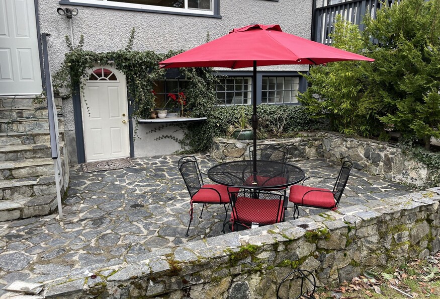 In addition to the shared backyard, the suite has its own patio area for guests to relax and dine outdoors.
