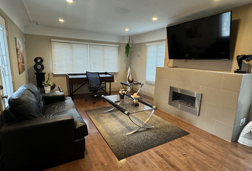 Enjoy a stylish experience at this centrally located place. Fully stocked kitchen w Large fridge / freezer, stove and microwave. Full bathroom. Cozy fireplace living room w massive flat screen tv. Less then 2 min away you have: Tim Hortons, Wendy's, McDonalds, Metro, FreshCo, Subway, TD, RBC, Starbucks and tons of other amenities Short 8-10min drive to White oaks or Downtown. There are just two bedrooms (other bedroom is also Air BnB). free parking on premises 150m from Victoria Hospital