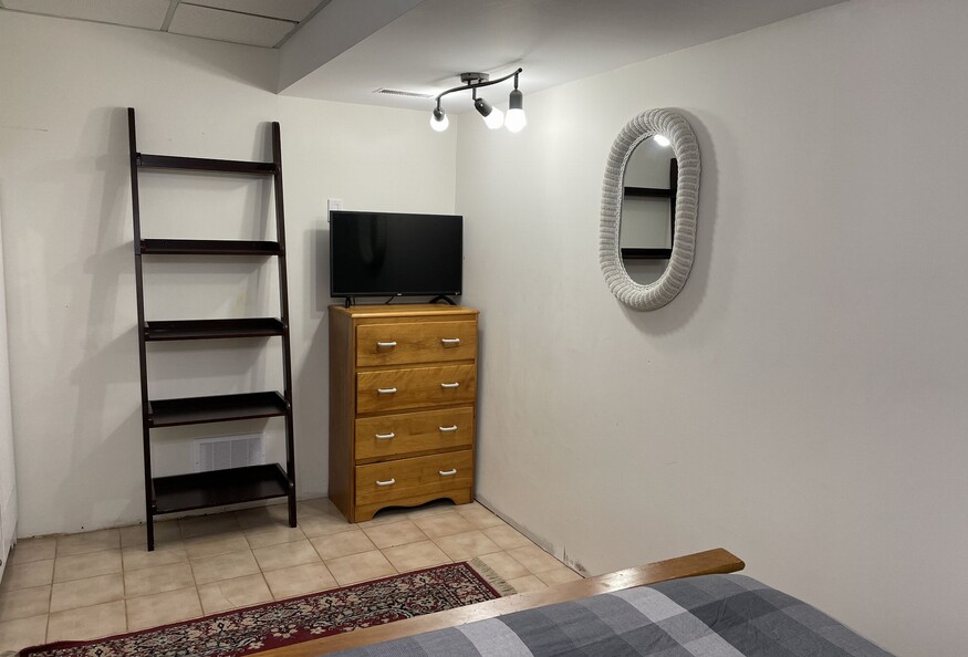 Newly renovated bedroom and private living room with small kitchenette. Shared bathroom on main floor with access to kitchen if needed
