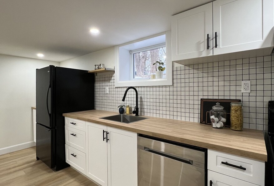 Featuring a separate keypad entrance, in-suite laundry facilities, a modern 3-piece bathroom, a spacious kitchen boasting ample storage space and a dishwasher. With a cozy electric fireplace, this unit seamlessly blends practicality with comfort.