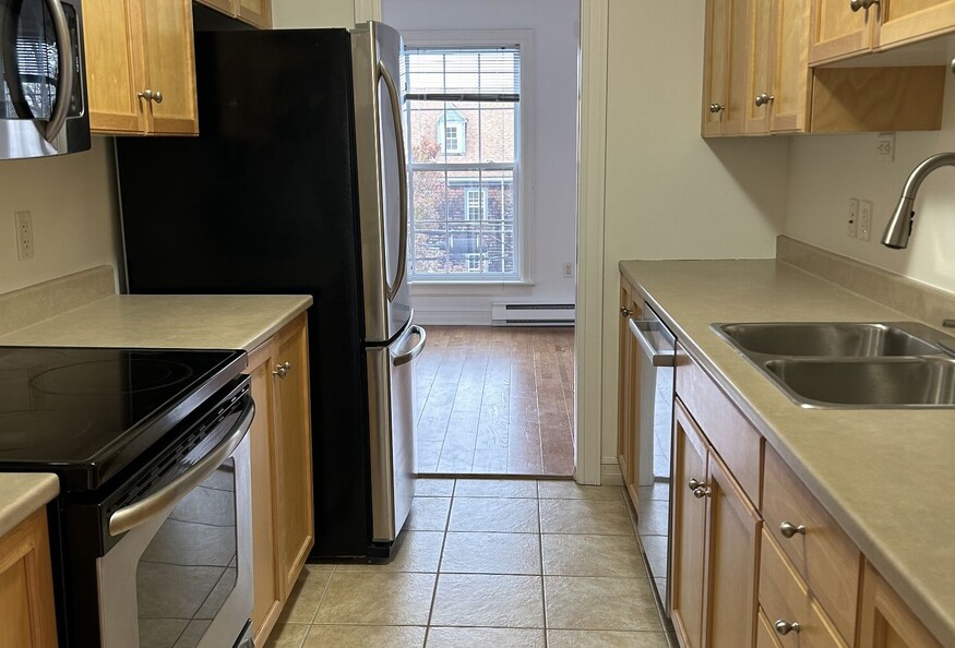 This lovely two bedroom plus den, one and a half bathroom, two-storey condo unit in the BRICKYARD is a great spot to enjoy all downtown has to offer! Walking distance across the Commons to the Hospital. Walking distance to Stadacona base. Walking distance to Irving shipyards. With engineered hardwood floors, solid wood kitchen cabinets, a balcony, in-suite laundry and one assigned parking spot, this townhouse feels like a HOME. You can enjoy city living at its' best with a short walk to the Mooseheads game, or an evening stroll to Halifax's nearby Waterfront . Suitable for one couple, two roommates, or a small family with one or two children. Furnish to your taste to make it your home. The interior of the unit has been completely FRESHLY PAINTED white to give it a new, clean modern look and feel. Enjoy the view of the Halifax harbour from the upstairs bedroom, or a peekaboo view of the water from the den. No pets preferred ( a small, well behaved dog would be considered) No smoking No subletting