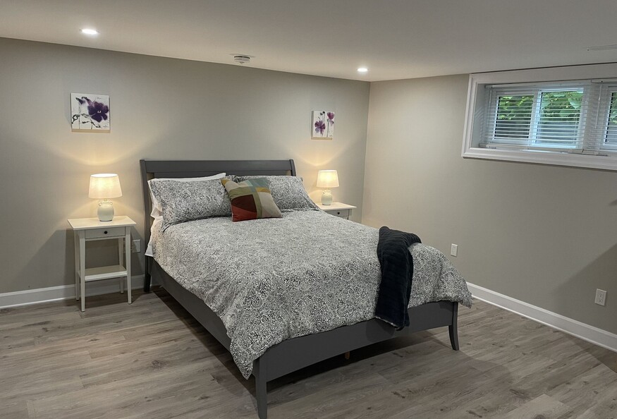 The unit is freshly renovated and furnished with both comfort and luxury in mind. It has a modern, spacious feel. Located at the end of a quiet street with easy access to the bike trail, it's easy to get outside and enjoy the area. A large silver maple creates a wonderful shady backyard to relax and unwind.