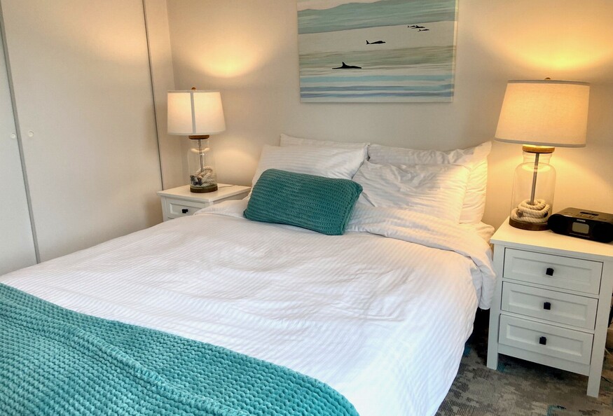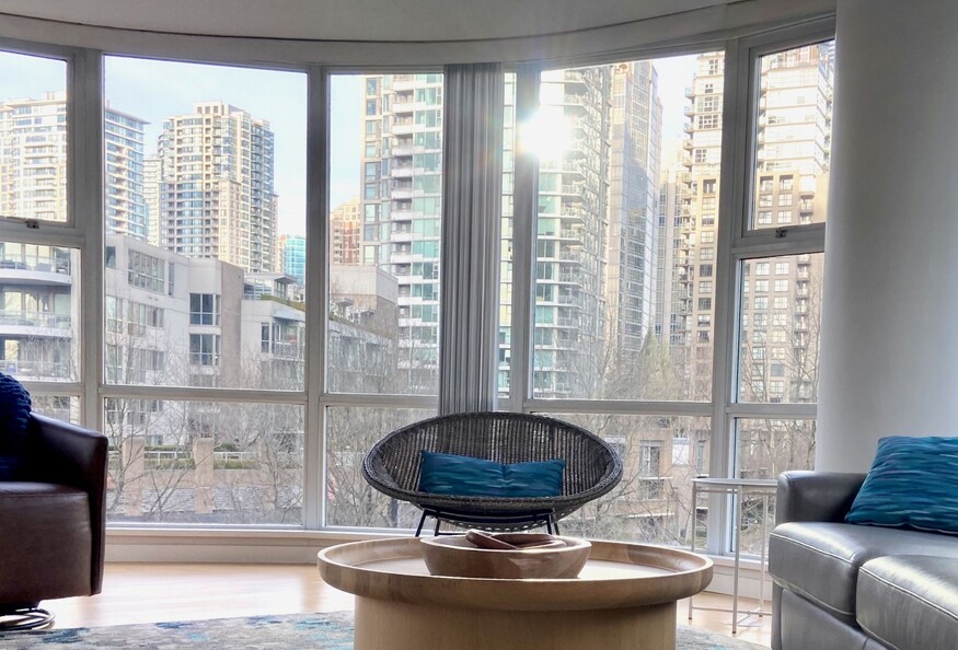 This large (728 sqft), airy, and bright one bedroom + office is fully furnished and equipped. Smart TV, leather Sofa Bed, fully equiped kitchen with dishwasher, in suite washer and dryer, Use of the amazing spa like amenities, pool, Jacuzzi, steam and dry sauna, large fitness room and bike room, with 24 hours concierge service. Ev Chargers are now available. One parking space upon request. High speed Wifi and Hydro is included. Located steps from the seawall and shop, restaurants and grocery store.